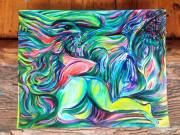 Though originally called “Don’t Look Back”- I am sticking with *BATTLECRY*, the title I gave it the moment it was finished. I did this during chemo- partly why it has never been offered for sale. A smaller piece (11X14″, unframed. Acrylic and Gouache on Bristol Board. contact Vanessa and CC me)