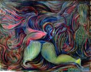I believe i may be the red entity riding on the “Picasso Legs” turning back to summon the troops into battle. I seem to have given myself breasts? The dark smear across chest is the cancer (if i remember correctly). This will be included in “Hotel Chemo” -the next project as soon as *CATGODZ* get’s done (working title is “C is for CAT”- though I am tending towards CATGODZ…). This is under $2000! and if you can’t afford that (list price is $2,800)- talk to Vanessa- We expect everyone to be honest. Remember if U pay list price it allows us to discount elsewhere. (Either way- list price is less the 40% the galleries will be asking in June.) This is NOT a group for investors- they can afford the additional 40%. This is for people who want to buy it because it moves them- not for re-sale purposes.