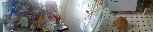 Gaining ground, progressively spilling onto the floor, up on the stove, back on the table, a magic landscape at night or dawn, an “Amazical Candy Land.”